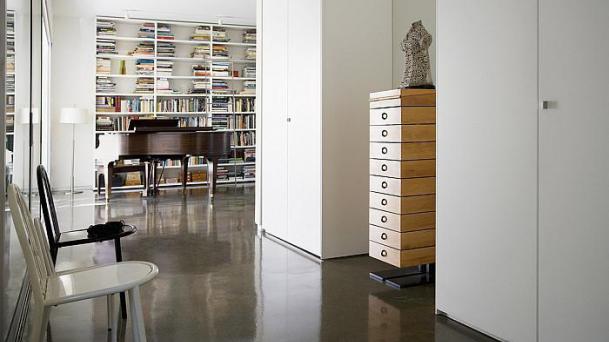 This apartment with nice shades of blue and a beautiful bathroom will help you to relax after work.